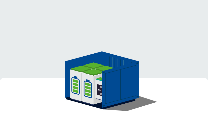 Bewaart overtollige zonne-energie in accu’s zodat er altijd over duurzame/goedkope energie beschikt kan worden, ook wanneer de zon niet schijnt.